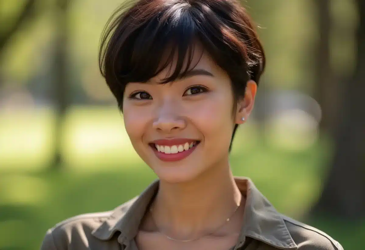 Idéale pour les cheveux courts, la coupe pixie est parfaite pour les visages ronds ou en losange. Elle apporte une touche moderne et audacieuse, tout en mettant en valeur les traits délicats.