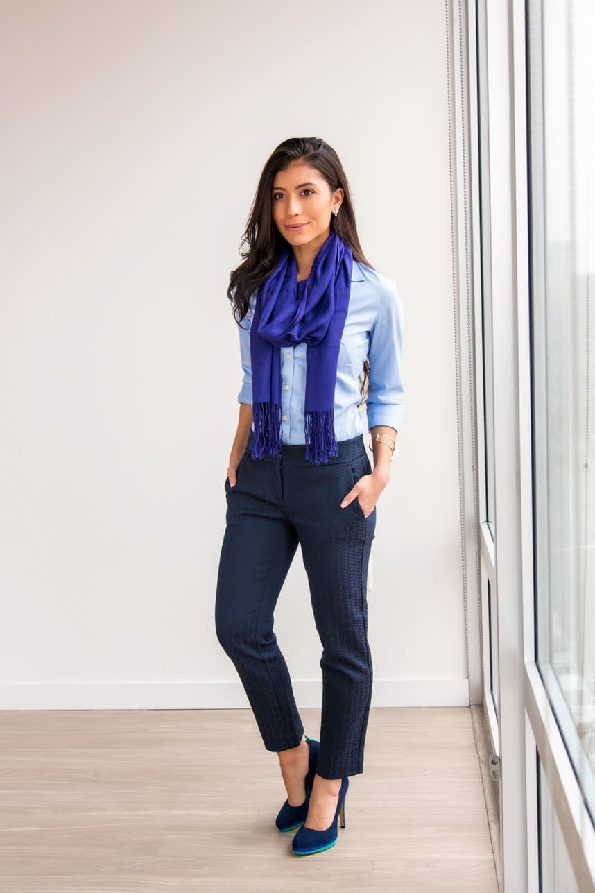 Personnellement, j’aime superposer le blazer sur à peu près toutes mes tenues business casual. Il ne fait jamais la même température dans un open space ou une salle de réunion, alors autant être prévoyante. Un détail que j’apprécie : retrousser la manche pour mettre en avant la doublure rayée du blazer, petit twist qui modernise l’ensemble. Ajoutez une ceinture fine sur une robe ou un foulard imprimé pour personnaliser votre tenue.