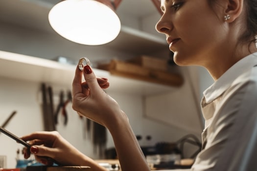 La réduction de la taille d’un anneau peut se faire de deux manières : soit en retirant une pièce de la tige, soit en la plaçant sur une plaque de réduction de bague d’un outil d’étirement de bague commercial.