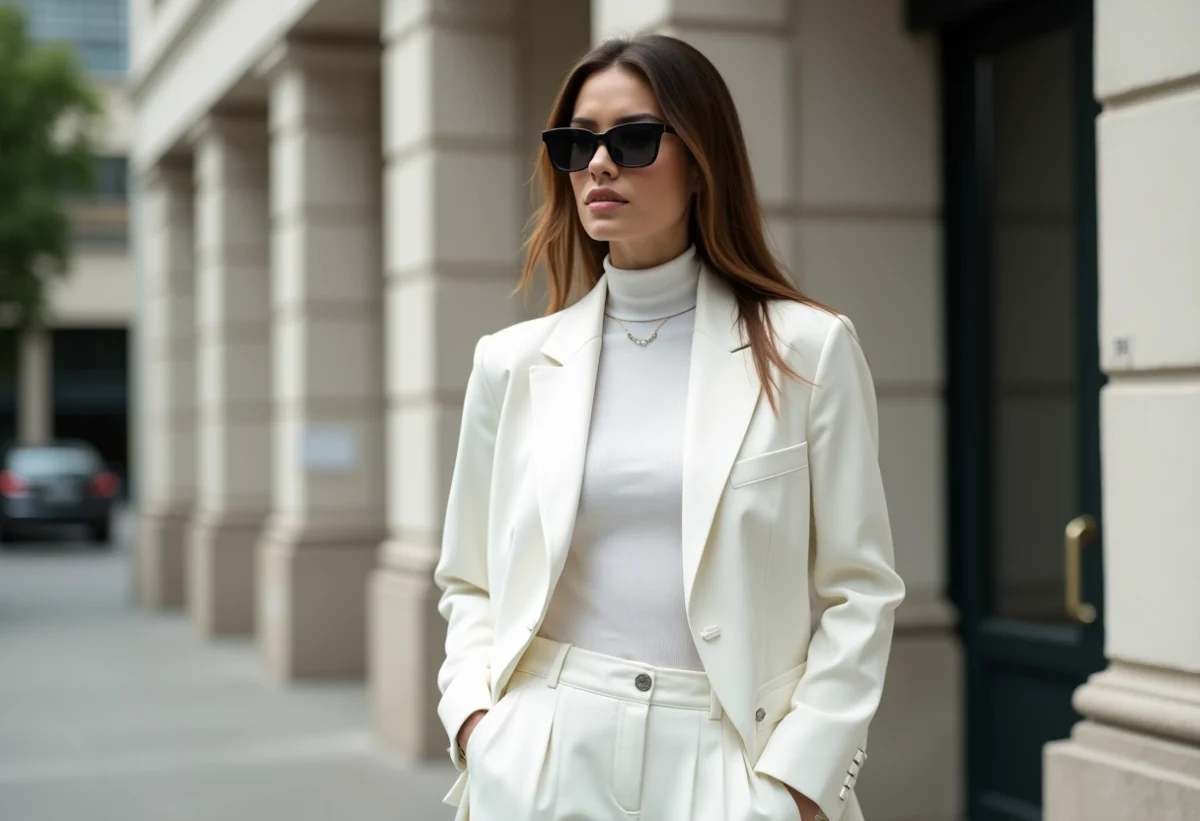 Le total look blanc, bien que risqué, peut être très chic. Mélangez les textures, comme une shirt en soie avec un pantalon en coton, pour éviter la monotonie. Les accessoires jouent aussi un rôle clé : des ceintures, des sacs et des chaussures ajoutent des touches de contraste et de sophistication.