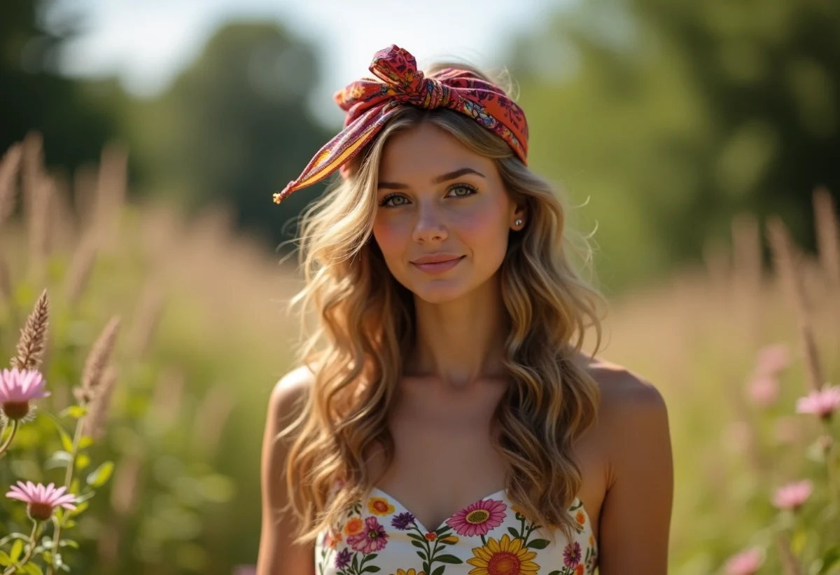Pour réussir ce style, il suffit de quelques astuces simples. Enroulez le foulard autour de votre tête en le nouant au sommet pour un effet bandeau, ou laissez-le flotter en queue de cheval pour une touche plus romantique. Les possibilités sont infinies, et chaque variante apporte sa propre dose de charme.
